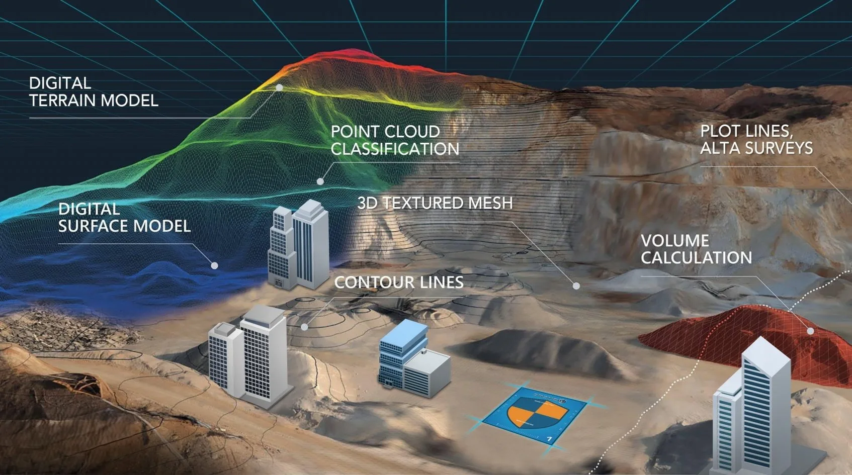 Drone solutions for topography mapping, alignment fixing, and progress monitoring.